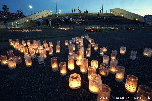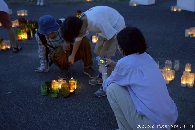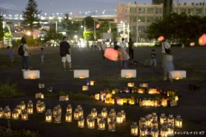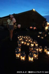 19時半を過ぎると風が止み、キャンドルの灯りが浮き上がってとても幻想的な空間となりました。